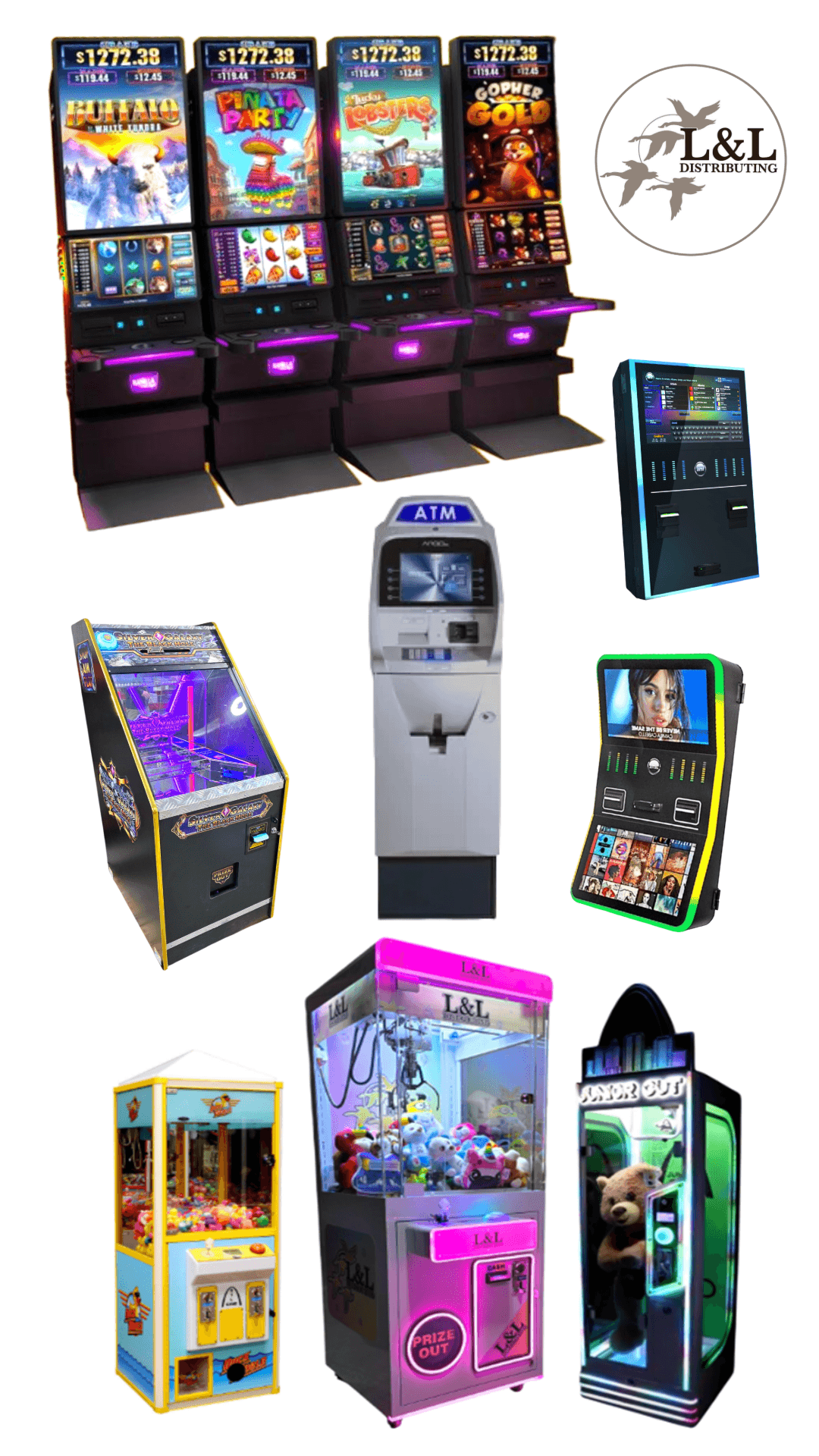 In the States of North Dakota, Minnesota, South Dakota, Nebraska, and Wyoming! From Skill Slot Devices, ATMs, Jukeboxes, Arcade Games, and anything else you can think of.